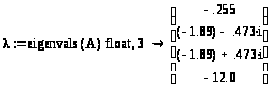 Для вычисления собственных значений матрицы А можно применить и функцию eigenvals, ключевое слово float применяется вместе со значением точности вывода результата с плавающей точкой.