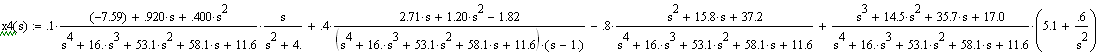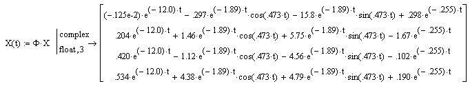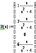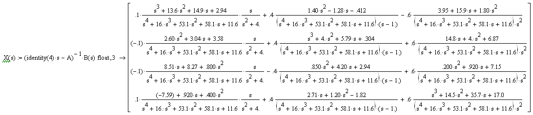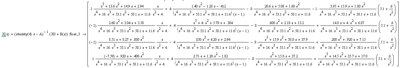 Решение с помощью преобразования Лапласа требует создания переходной матрицы. Этот вопрос решается очень легко, используя функцию identity из mathcad. Для нахождения изменения параметров системы в зависимости от времени используется обратное преобразование Лапласа (invlaplace).
