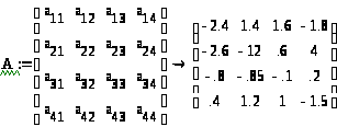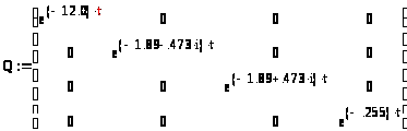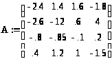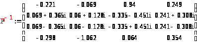 Преобразующую матрицу Р определяем по матрице А, используя дополнительную функцию eigenvecs(A) — вычисляет матрицу, содержащую нормированные собственные векторы, соответствующие собственным значениям матрицы А; n-й столбец вычисляемой матрицы соответствует собственному вектору n-го собственного значения, вычисляемого eigenvals;
