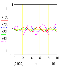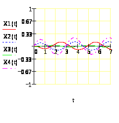Как видно рисунок 1.3. совпадает с рисунком 1.1, где неизвестные получены с помощью характеристического уравнения системы и рисунком 1.2.- численный метод с использованием функции MATHCAD.