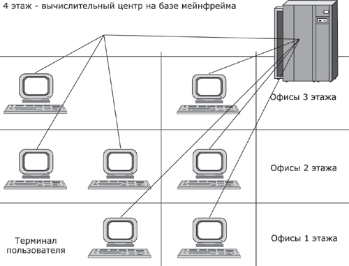 Рис. 1.2 Многотерминальная система — прообраз вычислительной сети