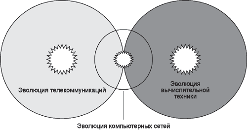 Рис. 1.1 Эволюция компьютерных сетей на стыке вычислительной техники и телекоммуникационных технологий
