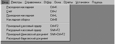 Рисунок 3. Главное меню программы. Меню "Ввод"
