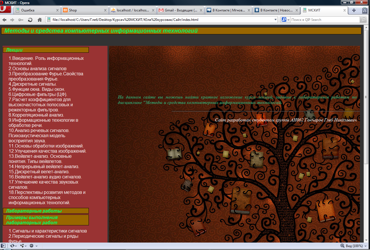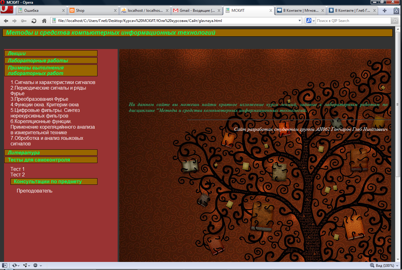 Основное предназначение конспекта – дистанционное обучение студентов по дисциплине МСКиТ. Начальная веб-страница запускается с помощью файла index.html (рис. 5.1).