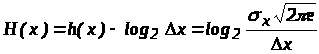 Если учесть что h(x)- это математическое ожидание функции [-log>2> f(x)] от случайной величины x с плотностью f(x), то можно записать.