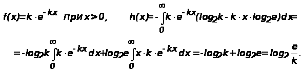 Определим дифференциальную энтропию для экспоненциального распределения. Это распределение широко используется для определения интенсивности отказов в радиоэлектронной аппаратуре