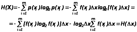 Значение первого слагаемого определяется законом распределения и характеризует дифференциальную энтропию непрерывного источника (т. к. f(x) - плотность вероятности или дифференциальный закон распределения)
