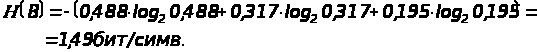 H(A)=-(0,105log 0,105+0,301log 0,301+0,396log 0,396+0,198log 0,198)=1,856 бит/симв.