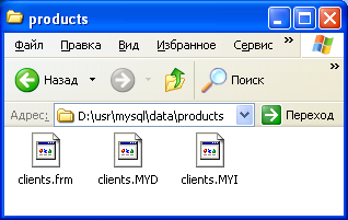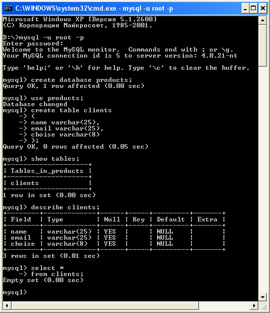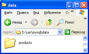 После этого следует набрать: mysql>use products;