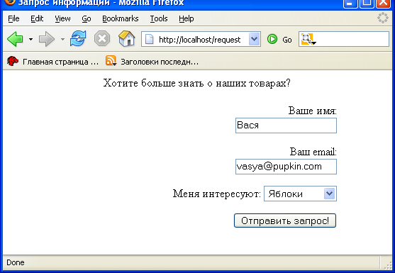 Сохранив этот код в HTML-файле form_1.html и просмотрев его с помощью браузера, можно увидеть HTML-форму: