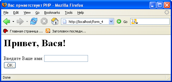 Введите Ваше имя: <input type="text" name="name">
