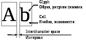 TrueType шрифты отличаются от остальных шрифтов еще и тем, что позволяют использовать различные интервалы между разными символами. При этом выделяют пары символов (kerning pairs) и для них задают относительное смещение (приближение или удаление), для получения наиболее качественного текста. Задание “кернинга” осуществляется разработчиком шрифта.