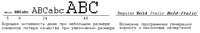 Возможна программная реализация наклонных и жирных начертаний на основе базового варианта.