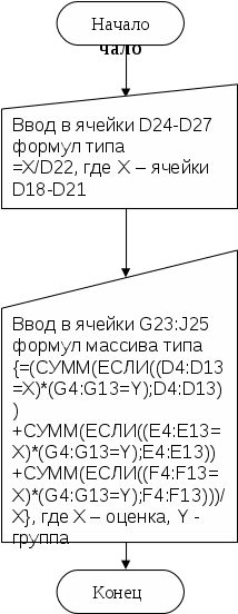 Данные формулы производят подсчет количества оценок «два» соответственно в каждой из групп.