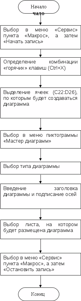 Таким образом, был записан макрос, выводящий на экран диаграмму при нажатии комбинации «горячих» клавиш: Ctrl+Z. Диаграмма приведена в приложении В.