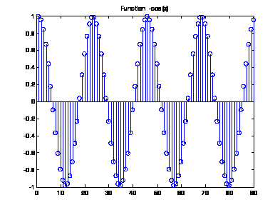 Разработайте функцию, позволяющую с помощью ДПФ формировать вектор, содержащий целое число периодов заданной функции. Длину выходного вектора, число периодов и функцию выберите в соответствии с вариантом 2: функция = – cos(x), длинна 90, число периодов 4.