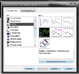 Метод создания диаграммы по умолчанию удобен тогда, когда все равно, какой тип диаграммы использовать. Если пользователь заранее знает, какую диаграмму он хочет построить, например более сложную, чем та, которую ему предлагает Microsoft Excel по умолчанию, то необходимо воспользоваться Мастером диаграмм.