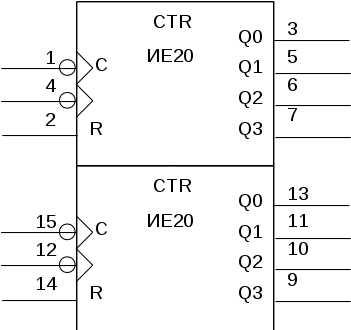 останні вісім – сигнали на виході лічильників.