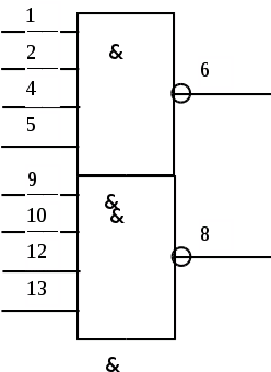 Мікросхема К555ЛА2 являє собою два логічних елементи 4І-НІ.