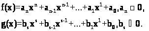Пусть R – некоторое кольцо. Построим с помощью нового, не принадлежащего кольцу R, символа х выражение вида f(х) = ∑а>v>> >xv, в которых суммирование ведется по какому-то конечному множеству целочисленных значений индекса v≥0 и «коэффициенты» а>v> принадлежат кольцу R. Такие выражения называются многочленами; символ х называется переменной, v – степенью полинома.
