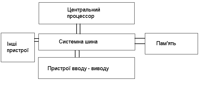 Системна шина – це пристрій, за допомогою якого відбувається обмін даними між процессором та іншими пристроями. Швидкодія системної шини впливає на швидкодію самої системи.