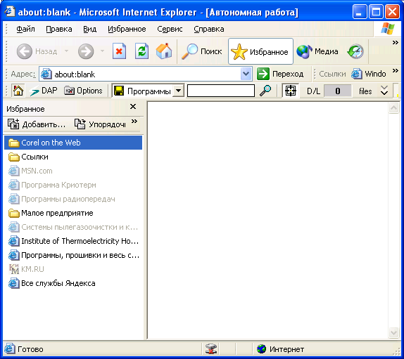 К услугам меню "Работать автономно" обращаются в том случае, если необходимо просмотреть одну из посещенных ранее страниц, не входя при этом в Сеть.