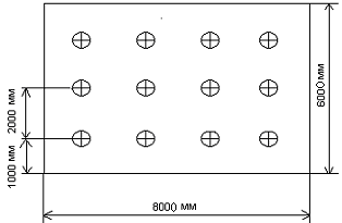 10. После расчета количества светильников для помещения необходимо сделать проектировочную схему расположения светильников (рис.8) и указать значение величины l - расстояние от крайних светильников до стен; L - расстояние между соседними светильниками.