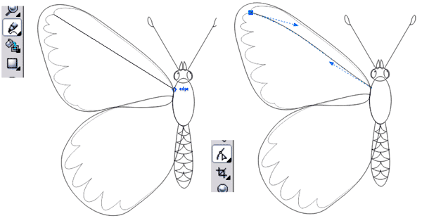 7. Интструментом Bezier Tool рисуем прожилки на крылышке, затем с помощью Shape Tool (F10) можно их подредактировать.