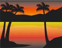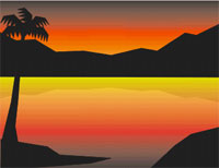 15. Дублируем слой с солнцем. Немного уменьшаем его по горизонтали и вертикали. Продолжаем дублировать, меняя размер, и располагаем одно поверх другого, слегка смещая вниз. Это создаст отражение солнца в озере.