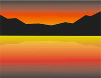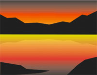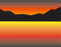 14. Рисуем круг Ellipse Tool , заливаем радиальным градиентом и помещаем позади гор.