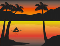 11. При помощи Bazier Tool рисуем лодку и, используя предыдущие шаги, создаем её отражение и перемещаем его за слой с озером.