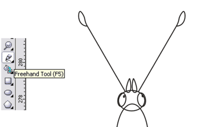 4. С помощью Freehand Tool (F5) рисуем антенны. Они заканчиваются каплевидной формой, которая рисуется таким же методом, как и хоботок.