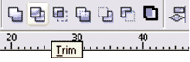 Самый нижний овал преобразуем в кривую (Ctrl+Q) или меню Arrange-Convert To Curves и инструментом Shape Tool (F10) придаем ему необходимую нам форму. Выделяем средний, затем нижний овал и нажимаем Trim.
