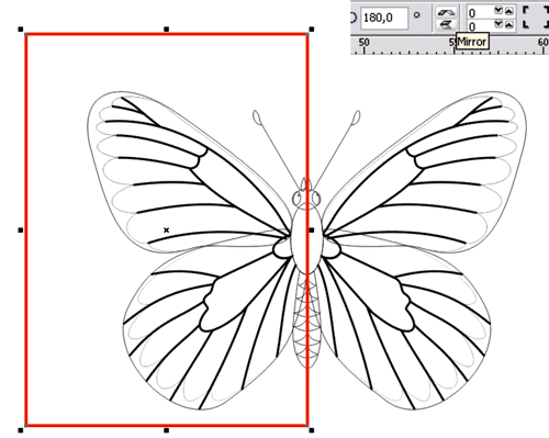 2. Arrange > Transformations > Scale (Alt+F9), в диалоговом окне выбираем зеркальное отражение и принимаем к дубликату, совместив два изображения, как показано ниже.