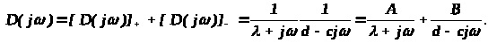 Используя операцию расщепления, представим выражение для частотной характеристики оптимальной системы в виде реализуемой и нереализуемой части