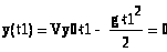 время полёта до наивысшей точки траектории равна половине времени t1, поэтому высота траектории равна:
