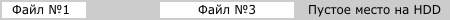 Теперь представим, что мы сохранили файлы на пустой жесткий диск, все файлы разного объема. Они по мере сохранения, по порядку, записались на жесткий диск. Потом мы стерли какой-то файл из середины, записанной серии файлов. А теперь хотим записать еще один файл на диск, но он чуть больше файла, который мы стерли из середины. Куда он запишешься? На место стертого файла он не помещается, значит, запишем его в конец очереди. А как же то неиспользованное пространство жесткого диска, где находился стертый файл? Это пространство осталось неиспользованным. В ходе работы пользователя за компьютером, такие записи и стирания происходят постоянно. Что бы сохранить пространство жесткого диска для файлов, а не для пустых пропусков, есть правило: "Используем любое пустое пространство диска, которое ближе к началу. Если файл не помешается, делим его на части и записываем по частям".