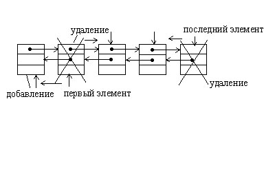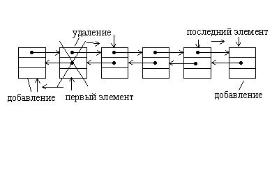 Динамическая структура называется деком (англ. deque – аббревиатура от double-ended queue, двухсторонняя очередь) или двунаправленным списком, если каждый узел её содержит два указателя: один указывает на предшествующий узел, другой - на последующий. Такие списки могут быть линейными и циклическими, а члены в них добавляются и удаляются с 2 сторон.