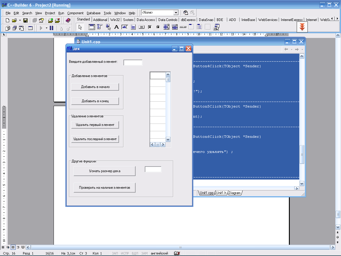 Edit2 (Значение, введенное с клавиатуры в Edit2, добавляется в дек)