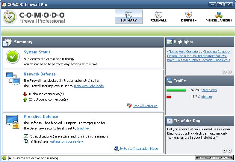 Что же касается брандмауэров, то по результатам многочисленных тестов лучшим из них был Comodo Firewall Pro.