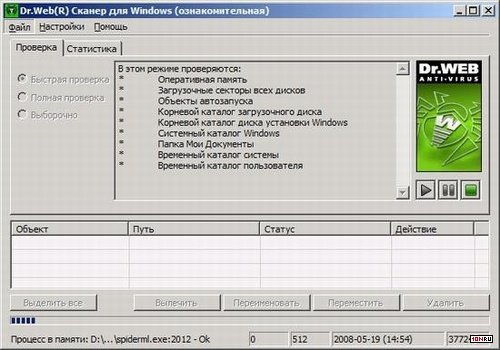 Суть его проста: в каждом тестируемом антивирусе запускалась задача сканирования по требованию каталога, содержащего коллекцию вирусов. Кроме количества обнаруженных вирусов, оценивается еще и время сканирования архива, а также объем системных ресурсов.
