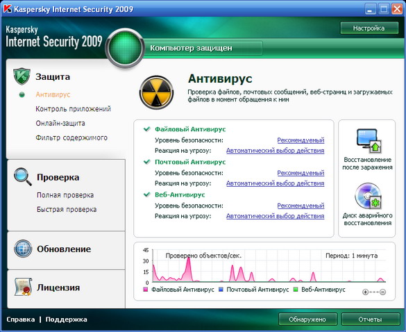 Заключительными штрихами в портрете завершенного антивирусного продукта является хорошо отлаженная система автоматического обновления антивирусных баз, практически без каких-либо задержек реагирующая на появление новых разновидностей "компьютерной заразы", и традиционная для продуктов Лаборатории Касперского возможность создания диска аварийного восстановления системы.