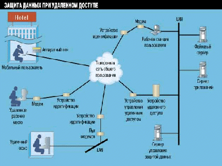 Современные системы удаленного доступа имеют некоторые встроенные средства защиты данных. Например, в сетевых операционных системах применяется идентификация пользователя с использованием имени и пароля. Кроме того, некоторые устройства удаленного доступа поддерживают работу со списками пользователей, где перечисляются не только имена и пароли, но и права пользователей на доступ к центральным ресурсам. В настоящее время на рынке появился ряд устройств удаленного доступа, рекламируемых в первую очередь как надежные средства обеспечения защиты данных. Это несомненное свидетельство того, что и производители, и потребители осознали важность данной функции.