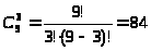 Начнём с длины выборки в 3 символа. Необходимо определить число сочетаний из 9 символов по 3:
