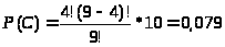 То есть существует 84 различных комбинаций 3 символов. Злоумышленник после 10 подглядываний узнаёт 10 различных комбинаций выборок по 3 (из 84 возможных). Вероятность того, что злоумышленник войдёт в систему с первого раза, составит: