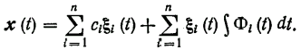 где p(t–t0)=exp A(t–t0) – матрица перехода процесса, а С1(t) – вектор, зависящий от времени, заменяющий вектор начального состояния x0 в уравнении движения при отсутствии внешних воздействий. Дифференцируя это выражение по t, получаем
