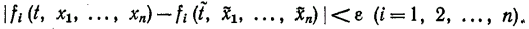 Общим решением системы (1) в области G называется совокупность n функций xi=xi(t,c1,…,cn), i=1,2,…,n. Будем говорить, что функция f(t,x1,…,xn) удовлетворяет условию Липшица в области G по переменным x1,…,xn, если существует такое постоянное число L>0, что для любой пары точек (t,x1,…,xn) и (t, xs1,…,xsn), принадлежащих G, выполняется неравенство