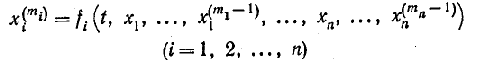 Предположим, что эту систему можно разрешить относительно старших производных. В этом случае получим систему уравнений: