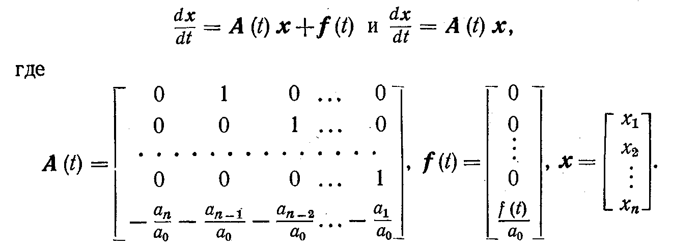 Если система описывается линейными дифференциальными уравнениями, то уравнения состояния системы сводятся к следующим: