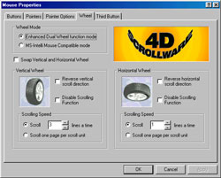 В кінці 1996 року Microsoft представила нову модель миші - Intellimouse. Новий пристрій виглядає практично так само, як і стандартна миша Microsoft, але між правою і лівою кнопкою у неї є маленьке коліщатко. Функцій у коліщатка дві. По-перше, воно працює як пристрій для прокрутки зображень на екрані - дуже зручно проглядати документи або Web-сторінки, злегка прокручувавши коліщатко вгору і вниз вказівним пальцем. По-друге, якщо на коліщатко натиснути, воно спрацює як третя кнопка миші. Трьохкнопкові миші існують вже давно, а ось функція прокрутки - це дійсно щось нове. Тепер, щоб прокрутити зображення на екрані, більше не потрібно підводити курсор миші до кнопок прокрутки, розташованих з правого боку екрану, або віднімати руку від миші, щоб скористатися клавіатурою; легкий рух пальцем - ось все, що потрібне! Що будь-який працює з Web-сторінками, текстовими процесорами або електронними таблицями погодиться, що це дуже зручно. І крім того, на відміну від кнопки (у трьохкнопкових пристроях інших виробників), важко натиснути на коліщатко помилково - адже воно маленьке, не потрапляє весь час під палець і на дотик відрізняється від двох інших кнопок.